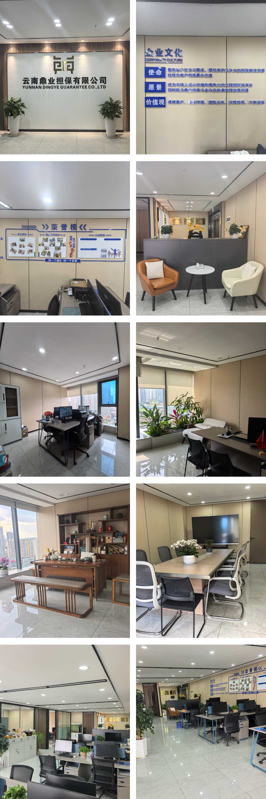 云南鼎业担保成立于2020年5月,注册资金1亿元。立足于国内工程领域,专业从事工程担保业务。公司主营业务有投标保函、履约保函、预付款保函、业主支付保函、民工工资支付保函、质量保修保函、大宗贸易等。业务范围覆盖房建,市政,路桥,水利,园林,消防,电力,智能化,钢结构,幕墙,装修,监理,造价咨询,设计以及供货采购等行业。